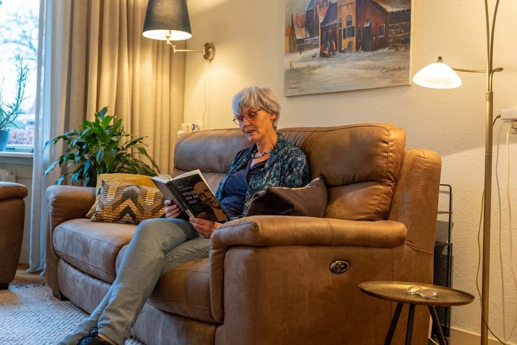 In de ruime, gezellige eetkamer werden we goed verzorgd. Het licht viel helder naar binnen, en met koek en hete zwarte koffie voelden we ons meteen thuis. Het deed me denken aan mijn eigen opa en oma. Grappig genoeg maakte ik mijn allereerste fotorapportage van een huis bij hen thuis. In hun oude, vertrouwde woning in Leersum leerde ze mij wat een huis tot een thuis maakt. Maar dat is weer een heel ander verhaal. Die leest u hier: Het huis waar mijn moeder opgroeide.
