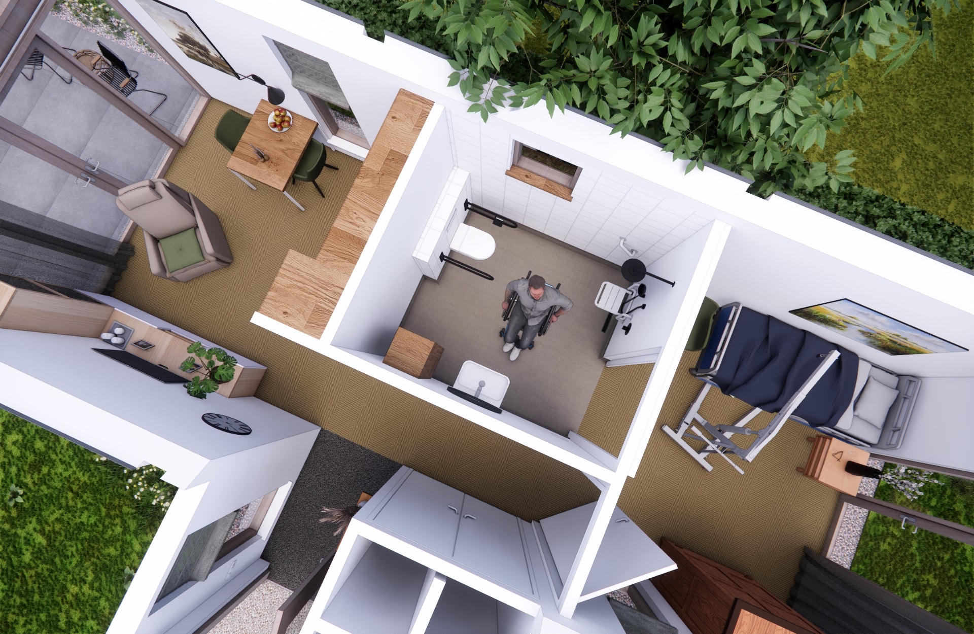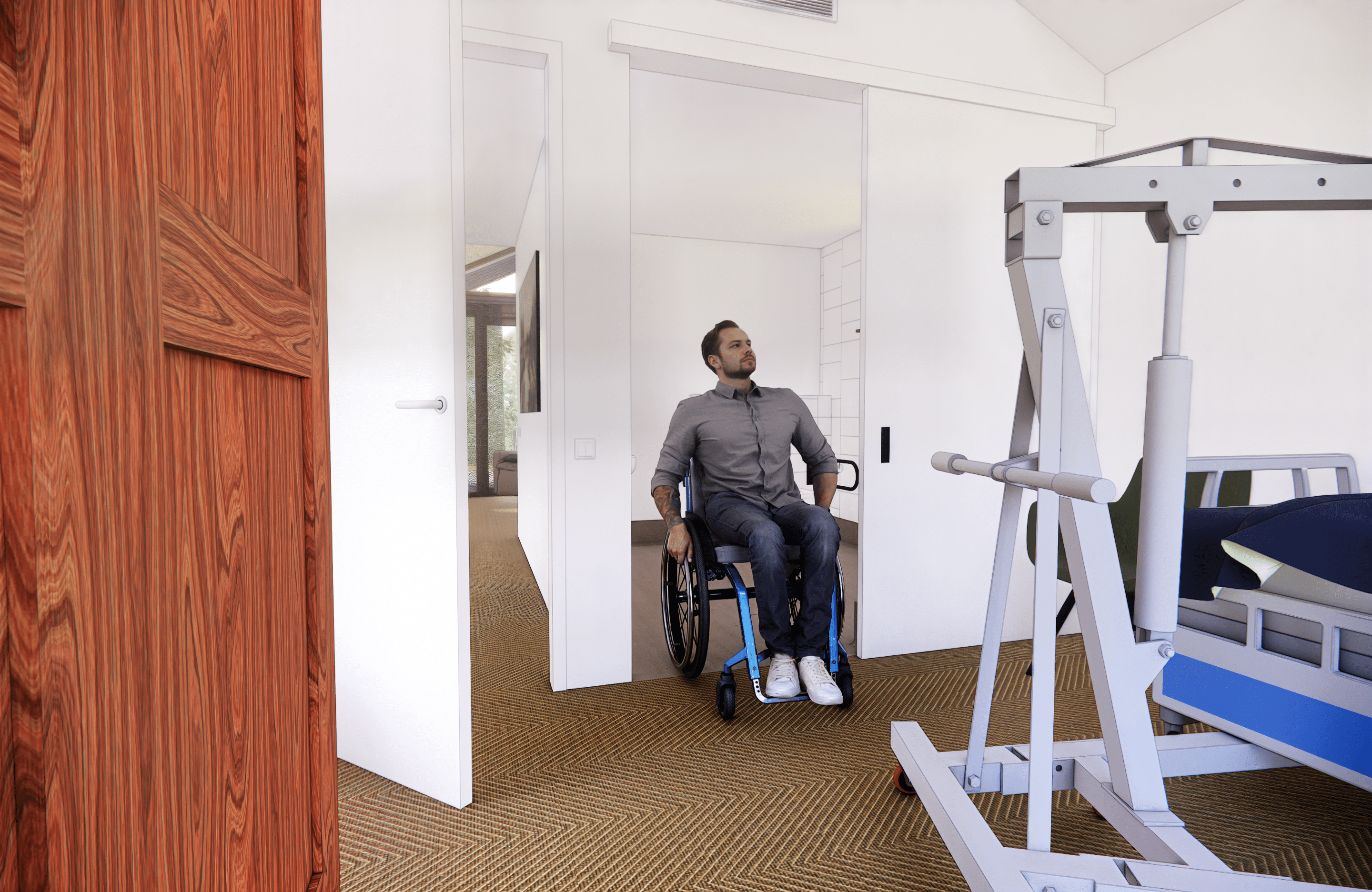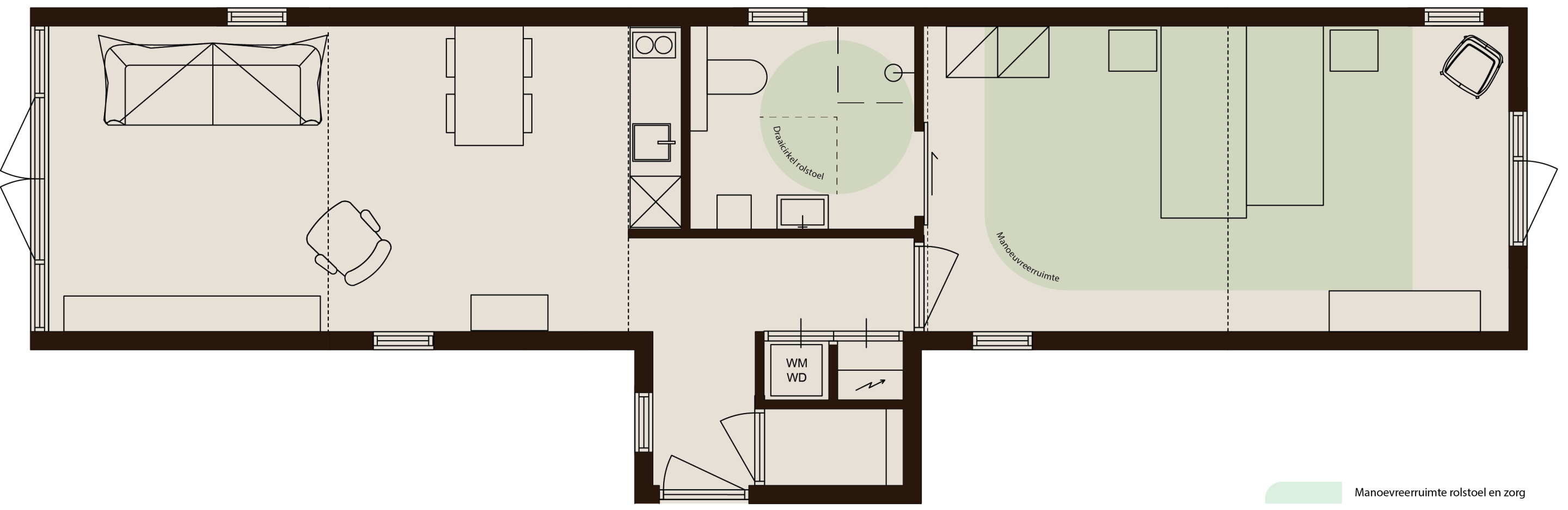 Voor de draaicirkel van een rolstoel is voldoende ruimte nodig. Daarom wordt gebruikgemaakt van speciale draaicirkels (1,5m). Dit voorkomt knelpunten en maakt de woning echt toegankelijk in het dagelijks gebruik.