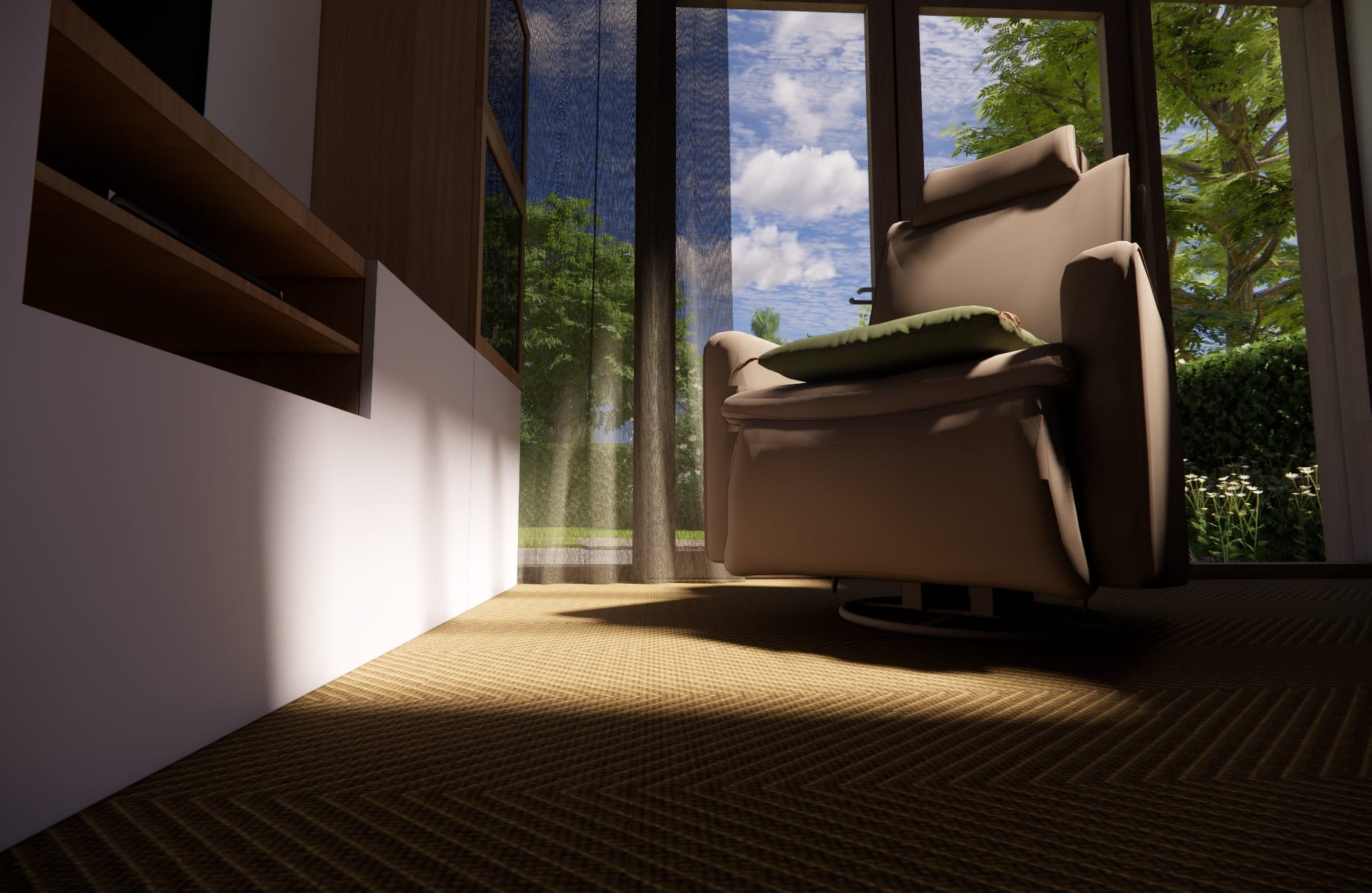 De woning is volledig egaal, zonder drempels ontworpen. Optimaal voor een rolstoel of degenen die slecht ter been zijn. De voordeur bevind zich op maaiveld hoogte, zo kunt u zelfs zonder drempel uw woning binnengaan.